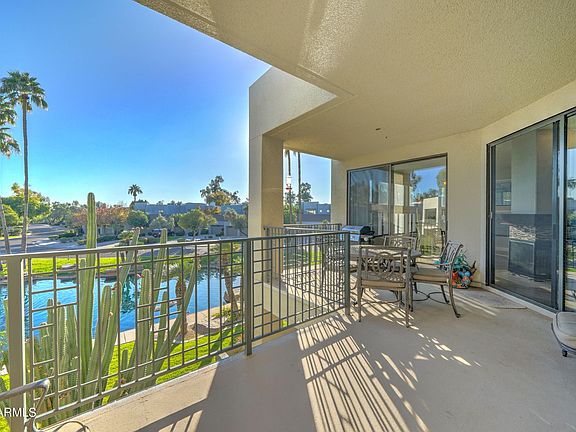 This gem is so delightful--& move in ready! Light, bright, airy kitchen opens to large dining room & great room---all with the sensational water views! The over-sized balcony makes it perfect for sunny Scottsdale entertaining with family & friends! A 3 bedroom/2 bath condo is rare--plenty of room for of your guests! Enjoy Gainey Ranch lifestyle w/ the incredible new gym, Bar & Lounge area, Wine Rm, Conference Rm, Heated pool/spa, tennis & pickleball courts--& of course secure guard gating 24/7/365!!