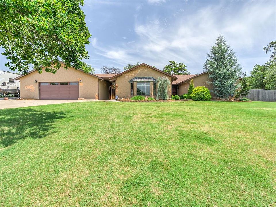 A rare find! This beautiful updated home sits on 1 acre with NO HOA! The attached garage has been converted to a living space with it's own heating and air system as well as a bathroom. It has it's own private entrance from the breezeway and detached garage. This is the perfect space for a home based business, MIL suite, home gym, or game room. The possibilities are endless! The Livingroom is great for entertaining as it's pre-wired for surround sound and has a wet bar! Are you looking for a primary bathroom that has a jetted tub that you can ACTUALLY lay down in? Well, this is it! The primary bedroom has an additional seating/nursery area. Conveniently located within the Carl Albert school district and minutes away from Tinker AFB! Perfectly located where you can quickly connect to I-240 and get to your favorite OKC destinations within minutes!