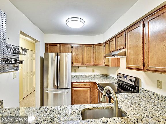 Rarely available ground level 2BR/2BA, Private deck in rear w/ view of woods, Updated kitchen with granite, ceramic tile, SS appliances, new vanities and faucets in both bathrooms. Large MBR w/ walk-in closet, balcony w/ pool view, recessed lighting, wood burning FP, recently painted, brand new hot water heater, newer front loading W/D. Great commuter location w/ bus to Pentagon, near FFX Cnty Pky