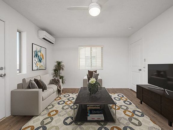 Discover Terra at Enchanted Hills Townhomes, an exceptional rental community nestled in the heart of Enchanted Hills. Our townhomes feature spacious layouts with two or three bedrooms, each boasting a private outdoor space, attached garage, in-unit washer and dryer, and contemporary finishes. Residents of Terra at Enchanted Hills enjoy a blend of safety and convenience. Within walking distance, you'll find Sprouts and Turtle Mountain Brewing Co., while the Rio Rancho Bosque Reserve beckons with its natural splendor just nearby. Designed to cater to families and individuals alike, our amenities cater to all. Dive into relaxation at the pool, unwind in the outdoor seating area, stay active in the fitness center, or catch a movie in the theater. Our lush grounds also feature various fruit trees, meticulously cared for by our team for the enjoyment of our residents. With gated access providing security, Terra at Enchanted Hills ensures peace of mind for all who call it home. We eagerly await your visit!