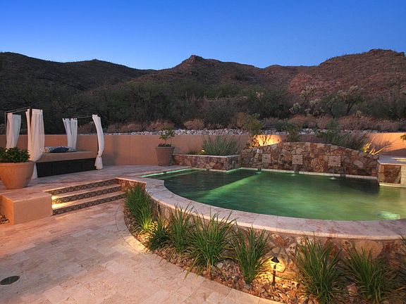 For more information on this property, contact the Listing Agent, Susanne Grogan at (520) 241-8099 or SGrogan@LongRealty.com. Elegant custom built Mediterranean in prestigious gated community of Sin Vacas. This home features everything you can imagine with the finest details in every corner offering elegance and warmth. Gourmet kitchen showcases granite counters, custom cabinets w/custom paneled refrigerator & dishwasher and SS appliances. Kitchen opens to spacious family room w/marble faced fireplace & large built-in media bookcase. Enjoy watching your favorite movies in state-of-the-art home theater.Master suite features marble faced FP, two walk-in closets and enormous walk-in shower featuring multiple spa jets. Outdoor living at its finest w/expansive travertine covered patio, BBQ, solar heated pool/spa, fireplace and travertine fountain. Minutes away from La Encantada,restaurants and golf.