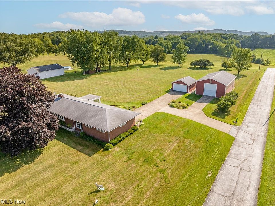 Room for a large garden or swimming pool with plenty of all day sun. Great opportunity to own this brick Ranch home with 2.13 acres of flat ground 3 bedrooms, 2 bathrooms and attached 2 car garage with breezeway between house and garage. Plenty of space for cars or equipment with 2 additional outbuildings 20 x 24 and 30 x 52 with paved driveways to all garages. The Ranch house offers a large floor plan with an updated kitchen in 2013 and an enclosed sunroom off the dining room. The basement has many possibilities with a full bathroom, pellet stove, and lots of storage options including a walk up access to the back yard. House has potential with some needed updates but is a blank slate for you to create and dream.