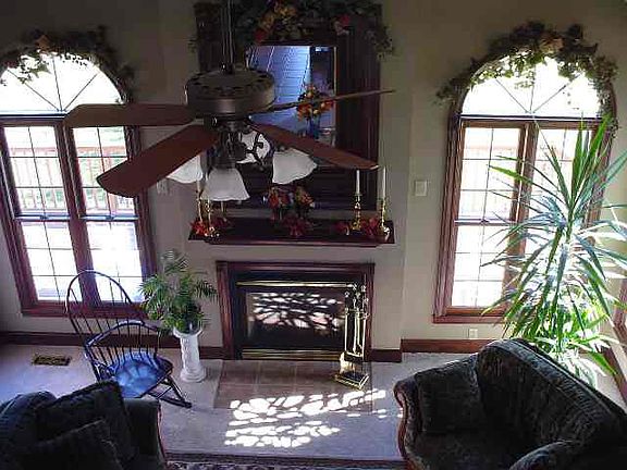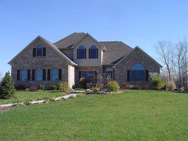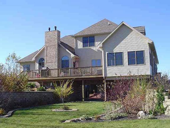 Gorgeous 3 bedroom, 3.5 bath, 1.5 story brick home boasts nearly 5000 sq. ft. on 5 rolling acres with view of woods & Prairie Creek Reservoir. A kitchen made for entertaining provides an abundance of cherry cabinetry, oversized island with bar stools, ceramic tile floors and stainless appliances. Informal dining is confluent with the kitchen and adjacent to sun room, warmed by a hearth area stove. Sun room, complete with built-in window seats, exits to elevated deck with 220 service for an optional hot tub on either the deck or patio below. Attractive 2 story living room features a fireplace situated below a handsome mantel / mirror, recessed wood panels and open ceiling beam - all in a deep cherry finish. A pair of Palladian windows bring outside views into the room. The endless main floor master bedroom contines with views of water from every window and boasts a barrel ceiling over a large Palladian window. *Reserved: bar & glass rack.