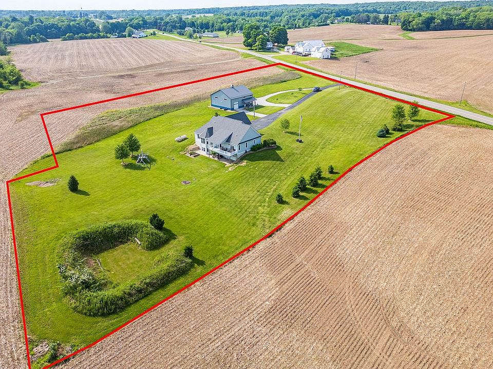 Easy Access to 1-71 this property is located in Highland Schools. 5 bed 3 bath w/attached & detached Garages. First Floor Master Suite & Laundry, fully finished lower level walks out to covered Patio. Updates Include: Granite Counters 2024, Kitchen Flooring & Lighting 2024, Fresh Paint Throughout, Carpet 2022, Barn 2021, Roof 2017. Stainless Kitchen Appliances Stay, Vaulted Great Room w/attached covered deck. Barn has 16' ceilings w/3 garage doors (14x12, 10x12, 10x10 w/openers). Radiant in floor heat with insulated foam, 16'' in ceiling. Paved Driveway. 3 Parcels. Shooting Range. Detached Heated Barn is 40x48. Property extends to the West beyond the barn into the un-mowed field which can be viewed by the aerial photos. See A2A Remarks.
