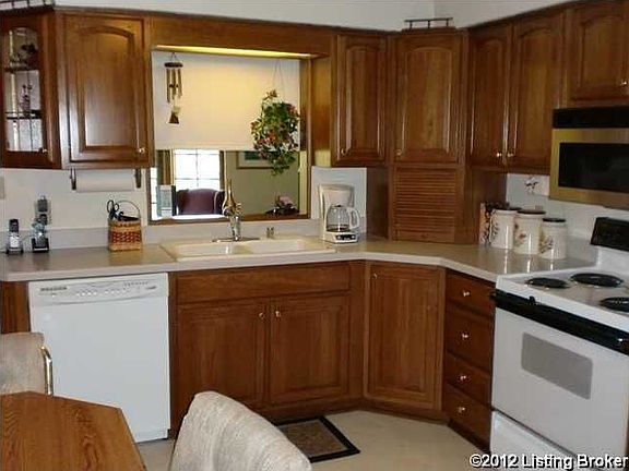 Immaculate 4 bedroom, 3 bath (2 full and 1 half) brick ranch home nestled on 2 cul-de-sac lots totaling acre! Conveniently located near the Gene Snyder, schools, shopping and restaurants. This home features HARDWOOD FLOORS throughout the first floor (carpet over hardwood in some rooms), fresh paint, ceiling fans, double pane Anderson windows, lots of natural light, new front and storm doors (very energy efficient), lots of closet space, new water heater in 2009 and numerous other updates. Upon entering the home, you will find yourself in a spacious living room complete with a beautiful wood burning fireplace, large windows and hardwood floors. The eat-in kitchen boasts updated countertops and custom maple cabinets with all appliances, including the washer and dryer, to remain with the new owner. Wonderful family room added on to the back of the home complete with hardwood floors, crown molding, ceiling fan and large windows overlooking the backyard and green space! You will also find a beautiful entrance foyer with ceramic tile flooring, formal dining room, laundry room, master bedroom, 2 additional good sized bedrooms and two full baths, one with ceramic tile, whirlpool tub and vanity/make-up area on the main floor. An adorable new Dutch door leads to the full FINISHED WALK-OUT BASEMENT. In the basement, you will find a family room with a second fireplace open to a dining area with French doors leading out to the backyard. The basement space also boasts a bedroom, smaller room that can be used as an office, etc. that has a cedar lined closet, large half bath/utility room and an additional room that had drywall that could be very easily finished into another bedroom. The basement provides lots of room for relaxing, family time, entertaining, working from home or additional living space. As if this were not enough, this home has a hot water boiler for heat that is very energy efficient, wrap around deck along the back of the house, 2 car attached garage and a HUGE lot with a beautiful green space view . THIS HOME IS A MUST SEE! CALL TODAY FOR YOUR PRIVATE SHOWING.