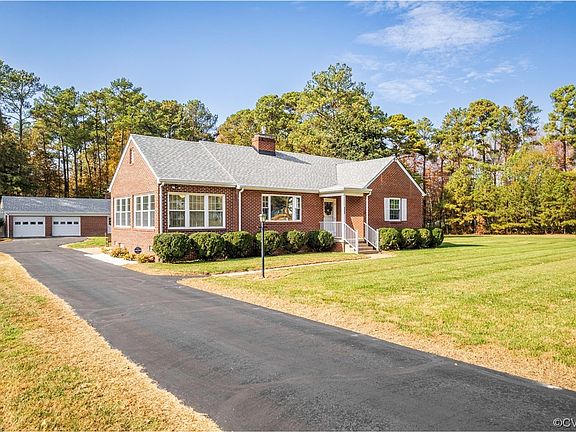 FABULOUS, SOLID FOUNDATION, ALL BRICK, 2 BDRM 2 bath ranch home on 4.4 acres in Varina! Original owners updated this home w/a NEW ROOF on the home & garage, NEWLY resealed paved driveway, FRESHLY painted interior w/ freshly painted wood paneling in the Florida RM & utility RM, NEW carpet (2022), NEW granite counters in the kitchen, water filtration system & NEWLY finished HDWD floor in BDRM 2. The living RM boasts a picture WNDW, gas FP, opens to a Florida RM & has access to the eat-in kitchen w/wood cabinetry, white Maytag & GE appliances, NEW range hood & steps down to the laundry/utility RM that could be converted to be another BDRM w/an exit to a concrete patio. The primary BDRM has a ceiling fan, 3 closets & an ATT BA w/single vanity, toilet & easy-entry shower w/grab bars. The 2nd BDRM w/ceiling fan & great closet space is next to the hall BA w/3X2 linen closet, sink, toilet, tub & tiled shower. Loads of storage w/a pull-down attic area that spans the length of the home or in the ENORMOUS 3-car DET garage (2 front load, one side load) w/extra workshop space that is a car enthusiast or craftman's dream. Close distance to the airport, the highway & 20 minutes to downtown RVA.