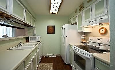 YOUR BUYER WILL LOVE THIS WARM AND COZY END UNIT HOME, RIGHT ON THE LARGE GREENWAY. PRIVATE & SUNNY! UPDATED-NEW HDWD IN KITCHEN. 1-CAR DETACHED GARAGE W/STORAGE ROOM & 1-RESERVED PK SPACE. STOVE AND ALMOST NEW REFRIGERATOR INCLUDED. NOT A SHORT SALE - QP.