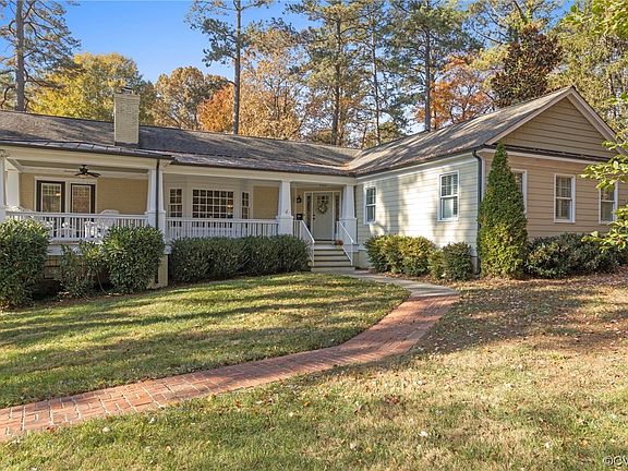 Westham Renovated Arts and Crafts Style Ranch! Relax after work on your huge Country Front Porch or grab your favorite beverage, open the Dining Room French doors, and head to the Florida Room. Getting cold outside? Cozy up with your favorite book in front of one of the 3 Fireplaces. And, never worry about a storm as this home has a Whole House Generator! The Main level is perfect for your family with 4 bedrooms and 3 full baths with the Primary having a secondary laundry. Make sure you notice the beautiful hardwood floors! The walkout basement with half bath is a great space for your pool table, a second den, or kids hang out. Plenty of parking for your guests with 2 paved driveways. This 1 acre lot in one of Richmond’s most favorite and desirable neighborhoods, Westham, is within walking distance to Tuckahoe Elementary and University of Richmond.