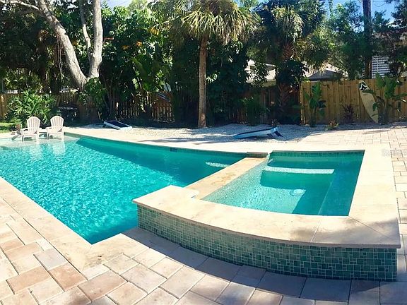 MULTIPLE OFFERS. HIGHEST AND BEST OFFER DUE 11/30 BY 7PM. Beautifully renovated, 3BR/2BA block home across the street from the boat basin with room to park your boat or RV in desirable, Palma Sola Park! Perfect for families, or investors / second home buyers. Wonderfully appointed with a split floor-plan, large open living room, dining room, separate large family room/game room, side entry garage, and a large covered lanai. The fully fenced in yard with a tropical landscape setting, designer pool and pavered deck is perfect for entertaining! BRAND NEW ROOF, new AC ductwork, new master bathroom shower, chiseled marble flooring throughout, engineered hardwood floors in bedrooms, newly added shaker kitchen cabinets, granite countertops / tumbled marble backsplash, and stainless steel appliances. Double vanity in master bath along with his and her walk-in closets. Before moving into the home, the homeowner rented short-term and has excellent rental history! Palma Sola Park is one of Bradenton's oldest and most desirable neighborhoods, located near shopping, restaurants, and schools. Anna Maria Island Beaches are less than 4 miles away. Neighborhood amenities include a fishing pier on Palma Sola Bay, acres of public greenbelt areas, sidewalks, and lush landscaping. There are no mandatory HOA fees. However, owners may join the voluntary HOA and/or the Palma Sola Bay Yacht Club (fees required). Yacht Club members are eligible for annual boat slips based on availability.