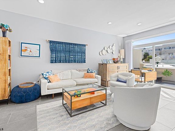 STUNNING "BEACH HOUSE" CONDO ONE BLOCK FROM THE BEACH! Welcome to your dream home! This COMPLETELY GUTTED and redone condo in 2019 offers a blend of modern luxury and comfort in a prime location. Step into a beautifully designed kitchen featuring high-end finishes including wine refrigerator and a spacious dining/living room area. Cozy up by the wood-burning fireplace or entertain guests with ease in this open, inviting space. Enjoy your morning coffee or evening relaxation on your private deck, overlooking a sparkling pool – the perfect backdrop for serene living. The living room features a queen-sized Murphy bed, providing a comfortable space for guests. Custom California Closets throughout ensure ample storage and organization. ALL NEW ELECTRICAL, HOT WATER HEATER, and HVAC SYSTEM, ensuring efficiency and peace of mind. The condo also boasts new windows with blackout blinds for ultimate privacy and comfort. An in-unit washer/dryer, and additional private locked storage unit for your beach gear, and one car garage parking with an additional guest spot make living here a breeze. Within walking distance to shopping, dining, and the boardwalk. Embrace the best of shore living with all amenities at your doorstep. Condo being sold with all furnishings and artwork-so just move right in! SCHEDULE YOUR TOUR TODAY!