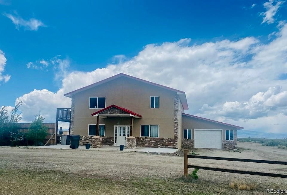 Country Home 10 minutes from Alamosa situated on 32 acres has lots to offer! 360-degree mountain views to die for! This amazing custom home has an open floor plan with radiant floor heat, two separate living areas on the main level. The open floor plan and oversized dining area are perfect for entertaining! Stunning dining area has double French doors that expand on to a large patio leading to a raised deck area holding a relaxing 6-man spa with blue tooth capabilities to operate a rocking sound and light system. The private yard encloses the deck and patio with 2-kiva stove to light up the evening celebrations! The staircase leads to the second floor, oversized with vaulted ceilings for grand collectable artwork or portraits of your choosing. The primary suite is extra-large with a private 10x10 balcony, Walk-in closet and tiled bathroom. The landing area is open and inviting. Additional features: house is hardwired for internet access throughout, security system included just pay the monthly fee for service. Now that we have your attention, the 6-car wrap around garage is fully insulated never falls below 48 degrees. There is a wood stove in the garage, but it has never been used and/or needed. Call for a private showing!
