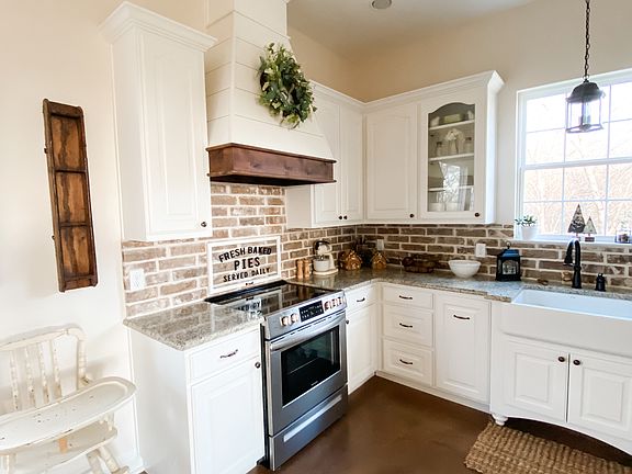 Granite countertopsVaulted ceilingFarmhouse sinkL-shaped porchSpray foam insulation
