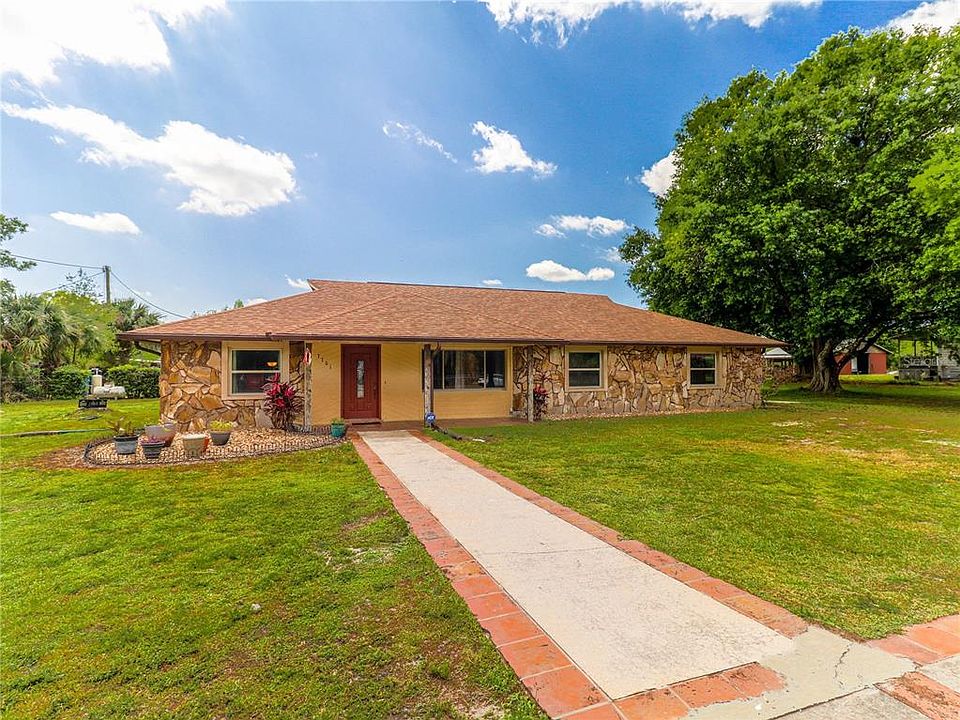 COUNTRY RANCHER... is located on 2.60 acres of fenced and crossed fenced property. Live in the country and commute to Tampa or Lakeland. Enter home with chain link fencing around home with double gate. Sunken Family Room has wood ceilings and archway openings to both living a kitchen areas, large picture window overlooks front yard. Formal dining and living combination has laminate floors or plenty of room for a separate office area. AT YOUR SERVICE! Style and speed for the homeowner who does more than cook all day. come home to prepare meals quickly and efficiently in this functionally designed kitchen. Large center island serves both as a snack bar or perfect for impromptu meals. Plenty of wood cabinets and granite countertops, ceramic tile floors, brand new propane gas range, large window that overlooks back yard. Make it your own walk in pantry or storage room that adjoins kitchen. Plus large inside laundry room with plenty of space for additional storage, separate door that leads to back yard. Master bedroom has one large closet and a smaller closet. The ensuite master bath has walk in shower ready for future expansion into smaller closet. Both second and third bedrooms are larger sized and share a remodeled second bath. All windows have been replaced. 8'x29' screened lanai is perfect for overflow entertaining. Or a perfect place to relax at days end. 3 stall horse stable with feed room. The second barn is of no value. Bring horses or any farm animal, plenty of room on 2.60 acres. Call now for details!