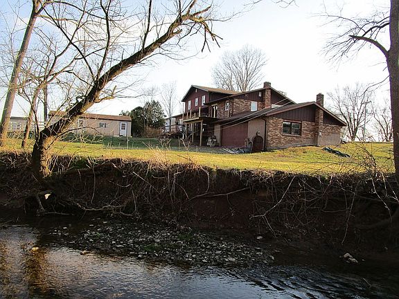 Large split level with 3 bedrooms, 2 with their own full bathroom, finished lower level with fireplace and full bath. Home sits on 17+ acres and offers many uses which should be confirmed with Township. There is a side entry 2 car garage and an additional rear entry garage for at least 2 cars. Rear deck overlooks farmland and rear stream/creek. Home does need work and offers immediate possession.