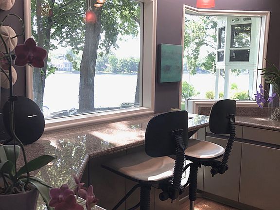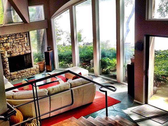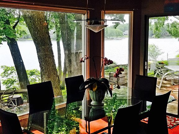 Lakefront, best view on west side of Weatherby Lake. Regatta in back yard every Sunday. Modern home designed by Cary C Goodman, legendary KC architect