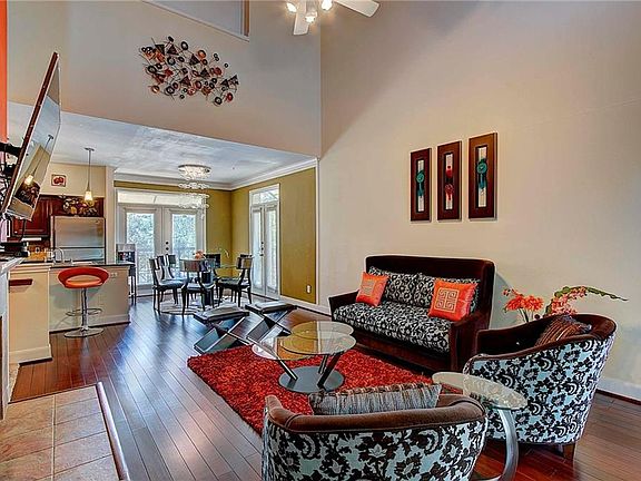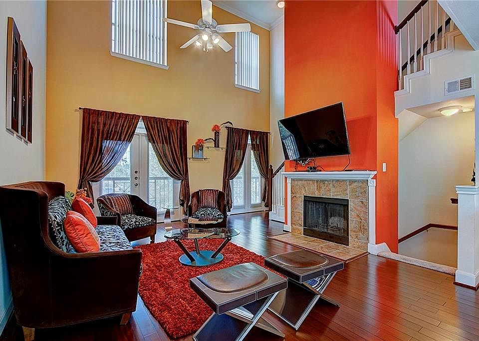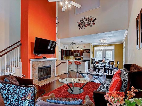 Gorgeous well maintained 2/2 3-level condo. Main level offers open concept kitchen/living, center island, granite counters, SS appliances, hardwood floors, fireplace, crown molding, large windows and 1 bedroom with full bath. Level 3 offers large Master bed and bath with office/nook space. Front door with fence yard. 2 garage spaces with storage and utility rooms. Gated community with pool!