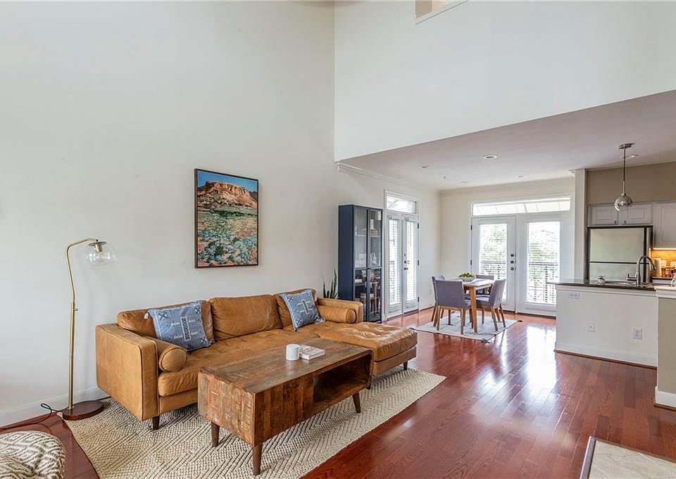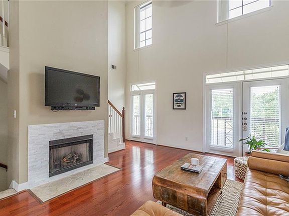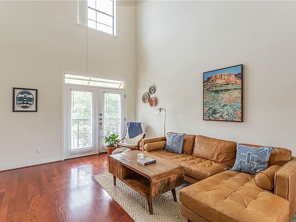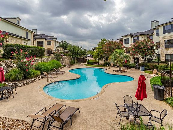 Updated and bright condominium in gated luxury property just a short drive from downtown and a short walk to green belt trail access, restaurants, and entertainment. This unique end unit with a private fenced yard offers great hill country living with maximum convenience. Soaring 20' ceilings, updated kitchen and bath, wood floors, granite, custom lighting, epoxy garage floors, motorized Hunter Douglas smart window covering, Google fiber, resort-style pool, & more. 3-story, 2 single-bay garages.