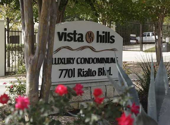 Vista Hills a private gated community just minutes from downtown - This 3/2 top corner condo features a private garage, wood floors, granite counter, huge closets, sitting room/study in master suite, scenic balcony, and so much more. HOA Fees include Water, Waste Water, Trash, Pool and common maintenance..
