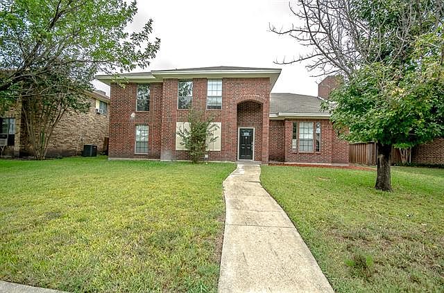 Red brick two-story with spacious vaulted and beamed ceilings. Entryway welcomes gleaming laminate hardwood floors, wide sight lines, and soaring brick fireplace. Eat-in kitchen features granite countertops, island, and stainless-steel appliances. Master ensuite has jetted tub. Good-sized grassy backyard with room to play. Blocks from Lake Ray Hubbard! Central to 30, 66, and Bush Turnpike. See attached offer checklist and warranty info.