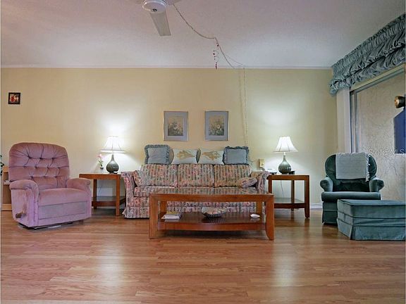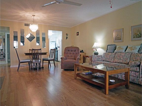 End unit, 2 porches front and back. Laminate floors, and title on the porches. Furnished. Monthly fee of $282.00 includes 2 cable boxes and internet. The community boasts 2 HTD pools, with solar covers for year around pool use. Lots of activies in season. Close to Bardmoor for medical and shopping. Easy access to 275 to Tampa Airport. Near Lake Seminole and sparkling Gulf Beaches.