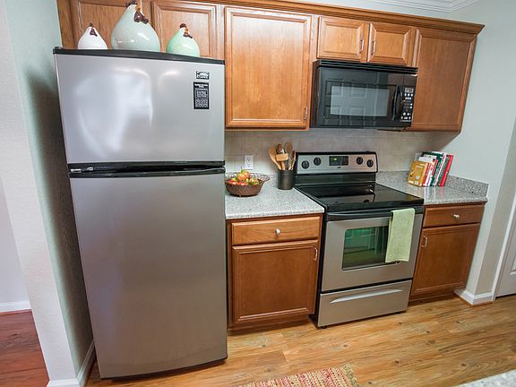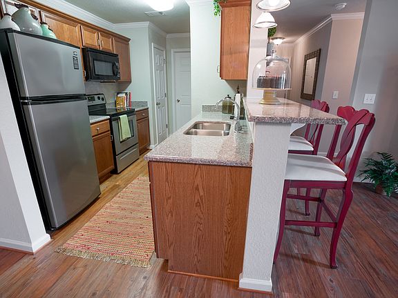 Choose from spacious one-, two-, and three-bedroom layouts featuring upscale touches such as stainless steel appliances, full-size in-unit washers and dryers, jetted soaking tubs, and screened-in patios. As a pet-friendly community, we offer a dedicated dog park and amenities that enhance life for you and your four-legged friends.
