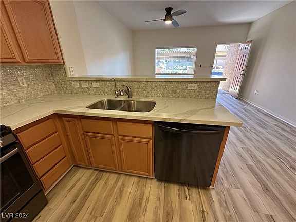 Beautifully Appointed One Bedroom, One Full Bathroom Unit Conveniently located on the First Floor. Located in One of the Hottest Locations in the New Southwest, Right Off the Buffalo Exit of the 215 and on the Edge of Nevada Trails. Unit has Quartz Countertops, Black Stainless Steel appliances and Wood Like LVP Flooring throughout. Open Floor Plan and Contemporary Color Scheme. Generous Sized Primary Bedroom and Walk-In Closet. Upscale Community has a Resort Like Pool along with a Clubhouse complete with a State of the Art Fitness Room. Move in ready.