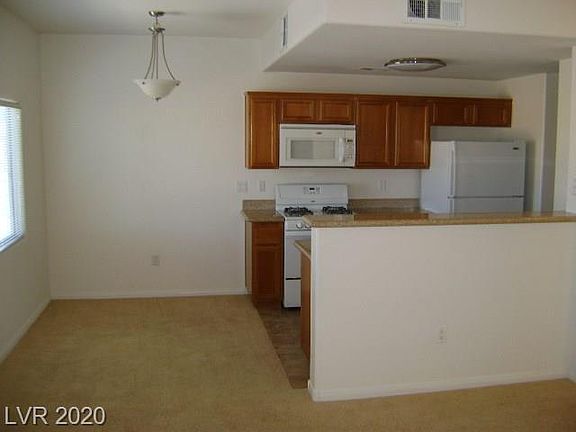 This wonderful condo is at the edge of Nevada Trails. The kitchen has granite counters with lots of cabinet & counter space with a pantry & breakfast bar. Opens to overlook large living room and dining combo. Master has a large walk in closet, balcony access. Master bath has dual sinks and a shower. Neural colors. Near 215, shopping. Community pool, club house.