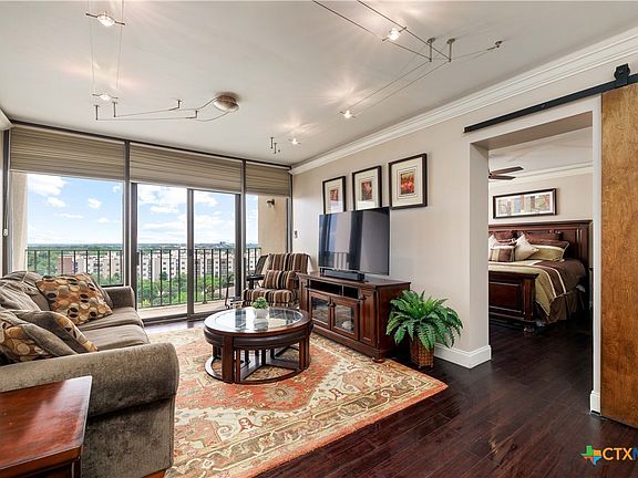 Welcome to Wurzbach Tower, perfectly located just a minute from the Medical Center! This inviting 2-bedroom, 2-bath condo offers a spacious and open floor plan on the 10th floor, providing stunning city views extending for miles. The living area features large windows that bring in plenty of natural light, highlighting the beautiful flooring that extends throughout the condo. The adjacent dining area offers ample room for meals and entertaining, seamlessly connecting the living areas. The kitchen comes equipped with great appliances, sleek countertops, and plenty of storage, making meal preparation a breeze. The master bedroom boasts an en-suite bathroom with stylish barn doors and a spacious walk-in closet. The second bedroom is versatile and can be used as a guest room, home office, or hobby space, with a second full bathroom conveniently located nearby. Additional features include a stacked washer and dryer for easy laundry access and balcony offering breathtaking views. Residents of Wurzbach Tower enjoy a range of amenities, including controlled access, 24-hour security, a sparkling pool, tennis courts, a fitness center, a game room and reservable party room. Additionally, the unit comes with two parking spaces in the garage, providing convenience and peace of mind. The location is unbeatable, with the Medical Center less than half a mile away and easy access to other shopping, dining, and entertainment options. Enjoy the vibrant city life with everything you need right at your doorstep. Don't miss the chance to make this inviting condo your new home!