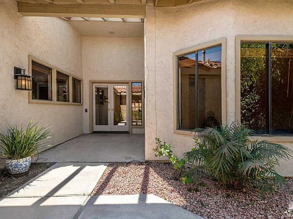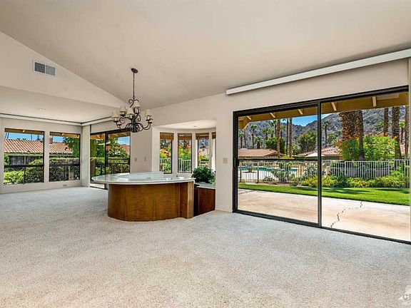 This beautiful and spacious RARE 3 Bedroom, 3 Bath home is situated at the end of a quiet CUL-DE-SAC in prestigious Indian Wells Country Club and boasts spectacular southern MOUNTAIN VIEWS and is just STEPS TO THE POOL! The interior is GRAND featuring soaring ceilings, a sunken WET BAR and wall-to-wall glass doors and windows that allow an abundance of natural light throughout the home. The Master Bedroom Suite features a spacious sleeping area with a FIREPLACE, private patio and a luxurious marble bath, separate shower, his/her closets and dual vanities. Parking is no problem at all...there's room for two cars plus a golf cart in the garage and, the oversized driveway and guest parking on the street, could accommodate a very large dinner party. You'll love this home and will feel secure within IWCC, a guard-gated and private golf club.