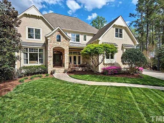 This architecturally stunning home is situated in the Wilkinson Park neighborhood of Governors Club. The large lot offers a flat cul-de-sac location w/ tons of trees, adjoining common area & wonderful privacy. The impressive residence provides a spacious & open plan. Large rooms & flow of the home are perfect for daily living & entertaining. Kitchen adjoins a huge family room. 1st floor master. Giant lower-level w/ media, fitness, rec-room & wine cellar. Close to UNC, Duke, RDU, RTP, shopping & medical.