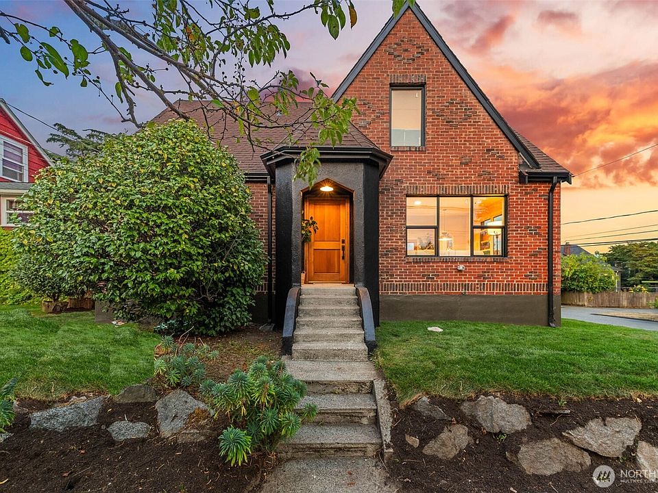 An exceptional brick Tudor, this home is a true masterpiece- where architectural artistry meets modern comfort. Sharp lines, striking black-framed windows, and timeless brickwork create a curb appeal that’s unmatched, appealing to those who value charm and character as much as livability. The primary suite crowns the entire top floor, offering an expansive view of downtown Seattle, walk-in closet and a massive five-piece en-suite bath. Efficiency meets elegance with brand-new windows, ductless mini-splits, and gas service throughout, blending classic character with modern refinement. Enjoy unmatched walkability from a quiet street, along with the convenience of an attached garage plus driveway parking. Fully fenced backyard!