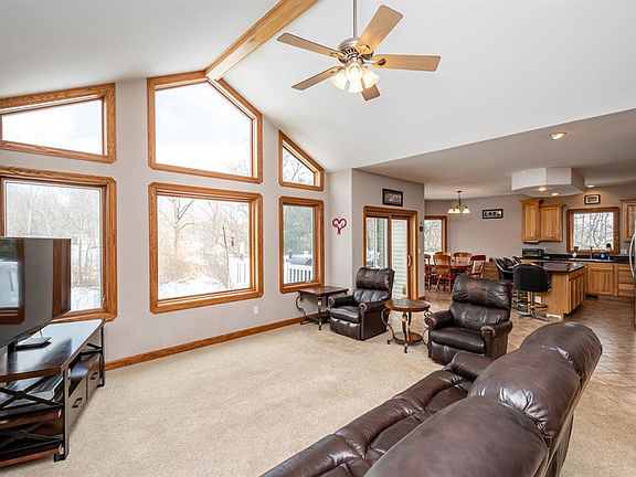Are you ready for some seclusion?!?! Tucked WAY back in the trees at the end of the lane, and overlooking a beautiful pond and timber, only about a mile on gravel, but this one is WELL WORTH THE DRIVE. This sprawling ranch has so much to offer! VERY WELL BUILT, and interesting fact, the stones on the house and on the fireplace were hand picked by the builder out of the field, and specifically selected for the exterior of this home! Vaulted ceilings in the great room, and an open floor plan in the kitchen/family space on the main level! Maintenance free deck overlooking the back yard with mature trees and timber. When trees are leafed out, it is complete seclusion! Master on the main, laundry on the main, nice wide open spaces, and built ins for display nooks/shelving. Downstairs you will find another full bath, and a large rec room area, complete with Bar, and beautiful stone gas fireplace! Walkout LL, lots of storage! Heated 3 Stall garage. Put this one on your list to see today! Anamosa Schools, or open enroll to Mt Vernon or Springville!