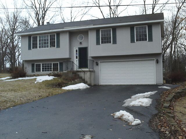 Great raised ranch on wooded lot. New carpet and fresh paint. Three bedrooms, two and a half baths, beautiful fireplace in living room. Large family room on lower level with half bath.