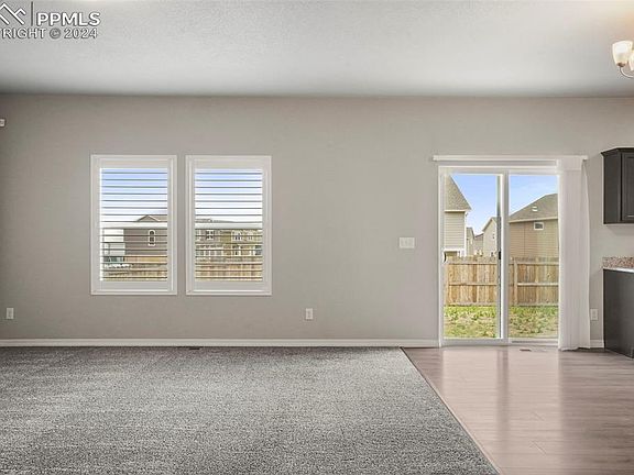 This 4 bed, 4 bath, 2 car garage home features an open concept main level. Just off the entry is the main level office with French doors and shutters. The kitchen is open to the dining and living space perfect for entertaining and boasts SS appliances, granite countertops and kitchen pantry. Upstairs features the primary suite with attached bath and walk in closet. There are 2 additional bedrooms and a full bath upstairs. The finished basement has a huge family/rec room, bedroom and full bath. The home sits on a corner lot located in the Bent Grass neighborhood located in the Falcon 49 School district. Close to all the amenities with a quick commute to Colorado Springs.