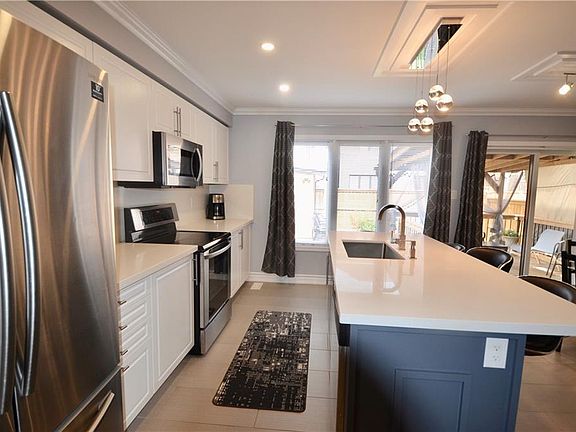 Immaculately-updated house with in-law suite in Niagara Falls! You will be blown away by the updates in this picture-perfect property... with loads of coffered ceilings, crown moulding, and wainscoting. The open-concept kitchen with quartz countertops shares a large space with the living room and dining area. Upstairs, the master bedroom has a 4pc ensuite and walk-in closet. The lower level has it's own kitchen, 4pc bathroom, and laundry. The cute backyard is fully fenced, with covered deck and shed. Built in 2017, nothing in this property is over 3 years old! View the property immediately by clicking on the 3D virtual tour and "walk" through the house and backyard at your leisure, and then call to book a showing!