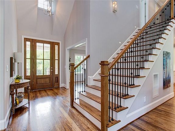 Canter Cove is a small enclave of homes situated next to a horse farm and surrounded by nature. Take in the tranquility in this lovely Walraven Signature Homes home! The master has its own wing with an exceptional closet and bath. Both master bedroom and dining room are accentuated with coffered ceilings. Two bedrooms are located on the main floor; additional bedrooms plus a bonus can be found upstairs. Covered porch for your enjoyment!