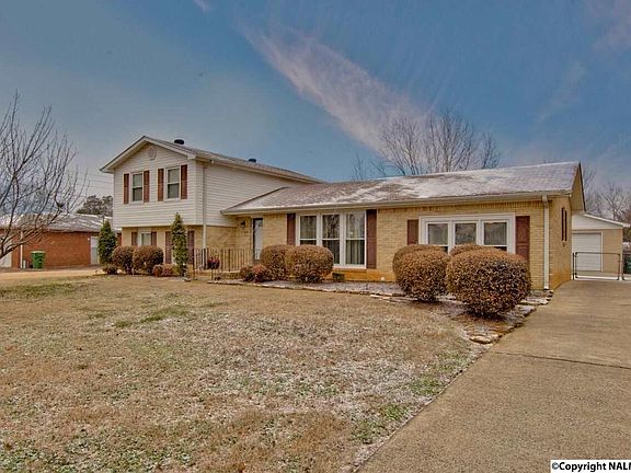 Super nice home with updated deco touches throughout. 2 entertaining areas makes entertaining lg crowds easy! Great Hsv location next to neighborhood pool/playground/tennis courts. This 4 bed home has a lg, open feel AND an oversized detached garage/workshop. Kitchen is open to breakfast and rec room. Beautiful hardwood floors in most living spaces including 2 bedrooms. Kitchen has hardwood cabinets and composite granite sink. House is nicely finished with abundant crown molding, window trim and baseboards. Lots of closet space in this home. Lg concrete area in back - great for hockey/basketball/rollerblading. Great space for a great price! Basketball goal does not remain.