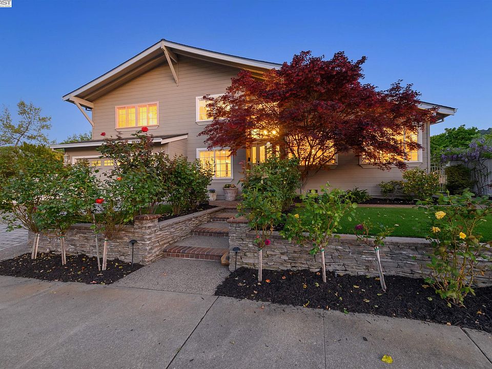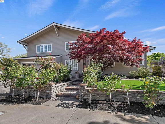 Stop and smell the roses at this spacious, move-in ready home with stunning curb appeal in a sought-after cul-de-sac location. This north-west facing Oak Hill property offers over 2500 sqft. of comfortable living: five bedrooms and three bathrooms with a park like front & back yards. This home will check all your boxes: a full bed & bath downstairs, vaulted ceilings, stunning real American walnut hardwood floors, whole house water filtration system, nest thermostat, EV-charger, copper plumbing, recently replaced roof, crown molding, recessed lighting, a sound system throughout and so much more! The beautifully landscaped front-yard is drought tolerant with recently installed artificial lawn and decorated with gorgeous rose bushes, Japanese maples, and mature trees. Relax on your backyard patio surrounded by ridgeline views, delicious fruit producing trees, and the fragrant scent of jasmine. Enjoy easy access to nearby walking trails, a community pool, a community clubhouse and playground. Located close to all three levels of award-winning Pleasanton schools along with convenient access to 580/680, the Bart station, and the nearby downtown Pleasanton. If you are looking for an amazing home located in a fabulous neighborhood look no further..This is the one!