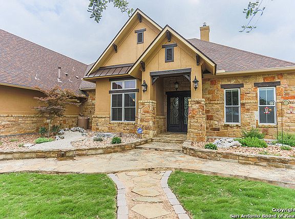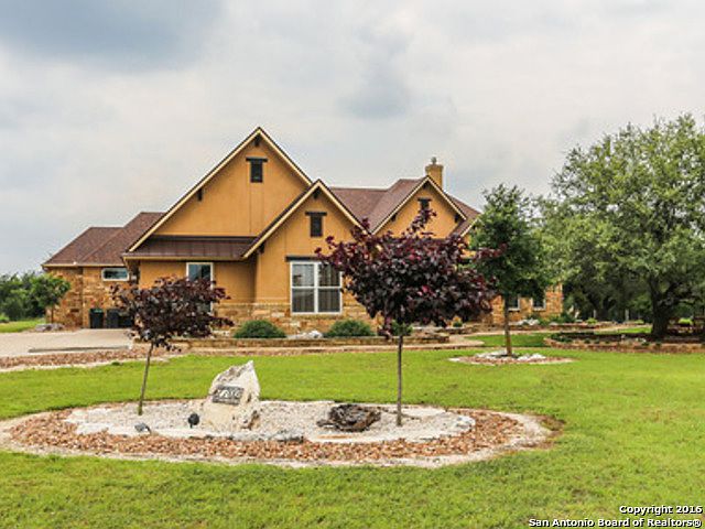 Texas-Ranch style home perfectly placed on 1.56 acres, backs up to Natural Bridge Wildlife Preserve! Come see the custom wood work in ceilings and floors, find the exercise room off the master, private media room, study, outdoor kitchen area with fireplace, beautiful high ceilings and more. Property fully fenced. Ramble Ridge premier subdivision is located in a pristine area where deer still outnumber the people. Development designed to ensure low-density housing in a quiet, private environment.