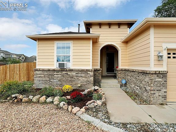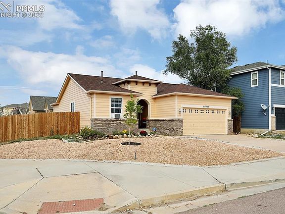 Located on a corner lot in the Heritage subdivision of Fountain, this one-level home is convenient to Ft. Carson, shopping, trails, and parks. The open-concept living, dining, and kitchen includes a gas fireplace and sliding doors to the backyard. A vaulted ceiling in the living room gives it a spacious feel, and the hardwood floors in the kitchen make it warm and inviting. There is a freshly painted office, which could easily be converted to a bedroom, but if left as an office it’s in an excellent location away from the great room so you can get some work done without too much distraction. The generously sized primary bedroom has a walk-in closet and an attached full bathroom. In the fenced backyard, there is an 18x20 foot concrete patio with an adjoining grassy area. The exterior was painted a couple of years ago, the roof is three years old, and the home has central air conditioning. All appliances stay. Home has been PRE-INSPECTED! *3rd bedroom is meant to be an office, but seller is willing to install a door and closet with strong enough offer.*