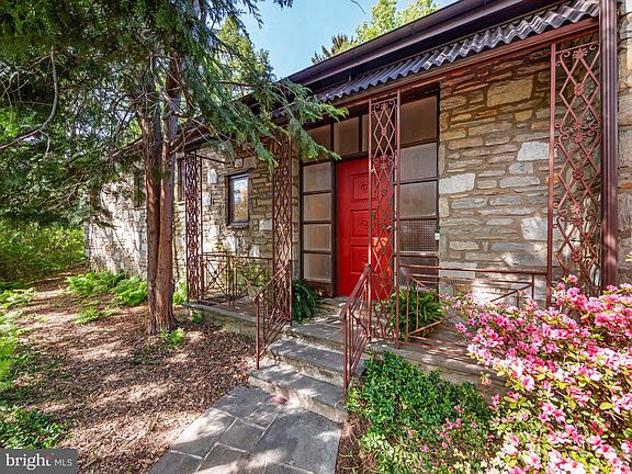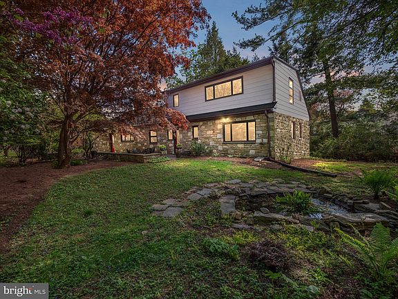 This light-filled and expansive Mid-Century home is special in so many ways. Every room is spacious, with high ceilings, ambient natural light, and gleaming hardwood floors. The spaces are gracious, bright, warm, and welcoming. Entering the open high-ceilinged foyer, you’ll find a natural stone floor, gorgeous custom woodwork, and an adjoining powder room and a large closet with shelves and hanging space ample enough to keep clutter out of the front entryway itself. The beautiful bright living room with a classic mantle focal point lends itself to many furniture configurations and flows seamlessly into both the dining room and the den, the latter of which could also serve as a sitting room or home office, and features floor to ceiling built-in cabinetry. The generously sized eat-in kitchen has an enormous amount of cabinet space, an easy to navigate layout, and many custom features. The laundry and mud-room is conveniently located next to the kitchen in its own dedicated room. The comfortable floor plan of this home lends itself to a variety of lifestyles, including multi-generational living and work-from-home. The bedrooms are large and pleasingly proportioned, and two–-one on the first floor and one on the second floor-–have en suite bathrooms. In addition to its own bathroom, the first floor primary bedroom has a large walk-in closet. Completing the first floor is another generously-sized bedroom and a recently renovated hall bath with separate tiled shower and soaking tub. The spacious second floor primary suite has three walk-in closets! Two are large enough to serve as dressing rooms, and they flank a convenient cedar closet that can be accessed through either walk-in closet. Imagine the convenience of moving seasonal clothing from one space to another without having to leave your primary closet. Adjoining the upstairs primary bedroom is a large light-filled “bonus” room that can be a home office, sitting room, nursery, artist studio, or other creative space. On the lower level, the large finished basement is also light and bright, with tile floors, a gas fireplace, and a built-in bar area with a sink and counter height refrigerator. There is enough space in this room for two separate activity and entertaining areas. The lower level is directly accessible from the garage. The storage throughout is remarkable on every level of the home, with several walk-in closets, and three separate large storage and utility closets on the lower level, providing room for storage, tools, equipment, and craft and hobby supplies to keep hidden away when not in use. When designed, this home was carefully situated on the lot to provide the best orientation to natural light, and a second entrance that is accessible to the street with no steps. The stone exterior is Wissahickon Schist, native to the area. The gardens are lovely, and showcase several ornamental and specimen plantings, including magnolia, viburnum, edible sour cherry, hydrangea, rhododendron, azalea, and many varieties of fern. There is even a small fish pond! This home has been lovinging cared for and tastefully decorated, with touches of the artistry of the long-time owners, both working artists and craft persons who drew inspiration from Henry Mercier, George Nakashima, and Wharton Escherich. Mid-Century features, including three of the four bathrooms, and the narrow plank hardwood floors have been carefully preserved. The home has just been painted throughout, and the furnace and hot water heater were replaced in 2023 and remain under warranty. The seller will provide a home warranty that covers home appliances. Convenient access to public transportation, Route 309 and the Turnpike, easy access to downtown Philadelphia.