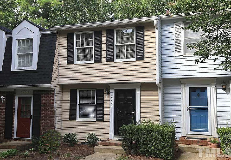 MULTIPLE OFFERS HAVE BEEN REC'D. SHOWINGS END TODAY 8 PM. Great LOCATION! North Raleigh, off Six Forks Rd. Convenient to 540, 440, shopping (North Hills/Midtown is 3.5 miles down Six Forks Rd.), restaurants, grocery stores, etc. New paint throughout. New carpet upstairs. Hardwood-look laminate first floor. Refrigerator, washer & dryer to remain. Large living room with french door to deck. Storage room. Private backyard backs to tennis court. Community POOL IS OPEN and you can see it through the trees!