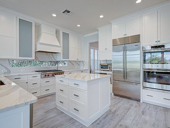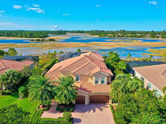Elegance at its finest within this 6 bedroom 5.5 bathroom estate home in the Preserve at Bayhill Estates. Spectacular backyard oasis featuring a 40 ft saltwater lap pool and spa designed by award winning architectural firm with custom landscaping all inside an airy two story screened enclosure. Half acre lot overlooks a serene water preserve with no neighbors behind. PGA National Golf Membership available but not mandatory. Home was completely remodeled and includes many designer touches. Impact glass throughout and a whole home generator. White modern kitchen features quartz counters, soft close cabinets with blue glass detailing, a wolf range, double ovens and subzero refrigerator. Soaring ceilings as you enter the home lead to an open concept kitchen, breakfast area and family room. Pocket sliding doors open up to expansive views of the pool area and preserve beyond with western exposure - perfect for evening sunsets. Designer touches include Plantation shutters, custom window treatments with motorized blinds, quartz counters, upgraded lighting featured throughout and 6 remodeled bathrooms.