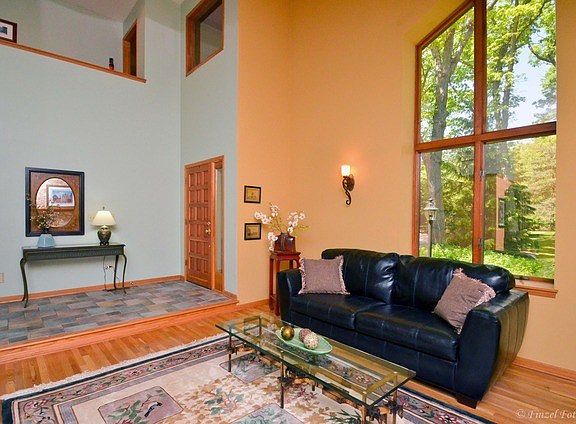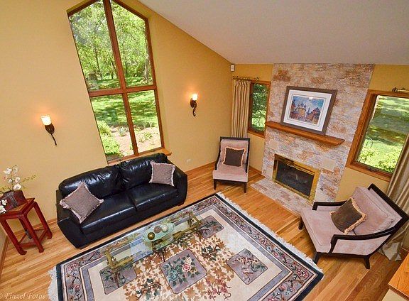 Beautiful home on majestic wooded lot, many large mature trees with perennial gardens on 3 acres makes the screened porch with stone wall & huge deck the place to entertain family & friends! Hardwood floors, abundant windows, gourmet kitchen, 2 fireplaces, 4 bedrooms, walkout basement & more! Barn has gas, heat, water & electric that backs to the horse trails of Bull Valley. Elegant and will not last long!