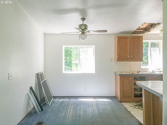 Price reduced! Three bedroom, two bath manufactured home on over eight serene Oregon acres. Spacious living room with wood stove and high ceilings. Master bedroom has a walk-in closet and its own private bathroom. Beautiful clearing around the home with surrounding trees. Two large outbuildings perfect for extra storage. Hole in kitchen ceiling drywall. This could be the place you've been looking to call home!