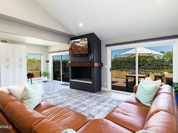 This stunning end unit townhome boasts spectacular views of both Camelback and Mummy Mountains. Recently renovated with custom tile work throughout. A bio fuel fireplace with black walnut mantle and vaulted ceilings in living room. Chefs kitchen offering high end appliances, quartz countertops and under cabinet led lighting. This home is the perfect blend of modern style and natural beauty. Located in a gated community that sits between 2 lush golf courses and walking/biking trails. This location is unbeatable. Don't miss rare opportunity to own this beautiful home! Owner is a licensed agent in Arizona.