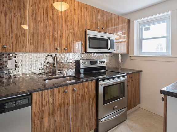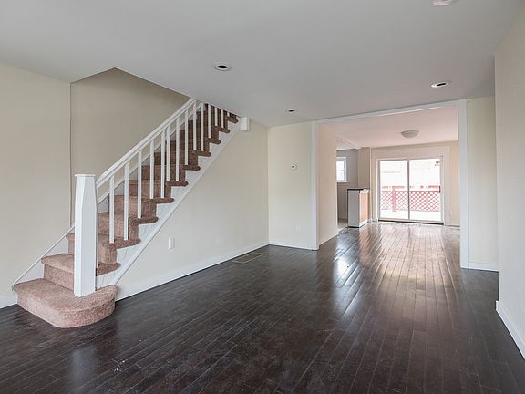 2 stories, 3 bedrooms, 1 bath townhome recently freshened up. Enjoy a front porch, rear deck and landscaped front yard. New kitchen, appliances, paint, carpet, hardwood flooring, porcelain tile, furnace and hot water heater. Lots of windows and recessed lighting. Nice open living plan and easy to access for showings. Full basement is finished and has a full size washer and dryer in their own closets. Basement has direct access to the rear yard with a regular size door (not a crawl up Bilco door). Two rear yards: Ground level and also a 2nd floor large deck, accessed from the dining room.