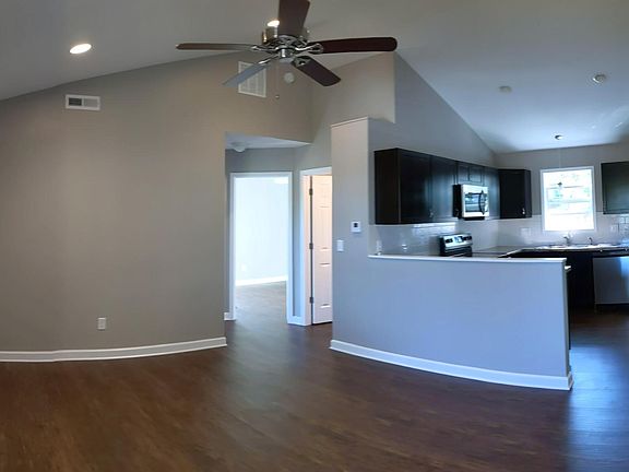 Be the first to live in this brand new 2 bedroom 1 bath Ranch home - Vaulted Ceilings in living room and kitchen - All stainless steel appliances including range, refrigerator, dishwasher and built-in microwave - Simulated Wood floors throughout - Walking distance to plenty of retail shopping and restaurants. - Electric Central Air and Forced Air gas furnace - Kitchen has All new stainless steel appliances - All rooms include ceiling fans - Exterior has seamless vinyl siding - Huge back patio - Huge fenced back yard - 1 car attached garage with garage door opener. Tenant pays for all utilities and lawn maintenance