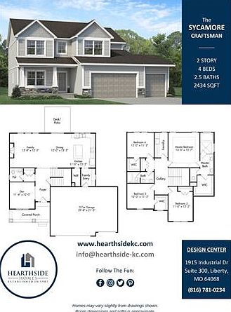 Welcome home to this new 2-sty plan, "Sycamore Craftman" by Hearthside Homes. It has everything you need on an in-grade Lot or flat Lot. This 4 bedroom, 2.5 bath, unfinished basement and 3 car garage with 8ft doors is Estimated for completion the first week of June and just in time to enjoy summertime in the Benson Place neighborhood. 2 swimming pool, a fishing Lake, Park areas, Soccer field and miles of walking trail. You can bike, walk, run to Hodge Park. Within walking distance to Kellybrook elementary and minutes to major highways and shopping. You will find this home loaded with trending finishes, including the Owners suite bath with frameless glass enclosure around tiled shower and tub area. Open Great room and Kitchen/Dining that leads out to the covered patio. Want a formal dining/den/playroom or office it has a flex room off the front entry. All room dimensions are estimated. 2022-04-08