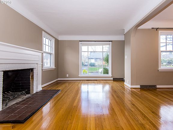 Fabulous bungalow on quiet street in the heart of Sellwood! Open floor plan featuring kitchen, dining room and formal living room with wood burning fireplace. Two spacious bedrooms upstairs and two on main level. Full basement. Beautiful hardwood floors throughout main level. Arched doorways, crown molding and large picture windows showcase tranquil garden views. Fenced yard with patio, water feature & room to garden.